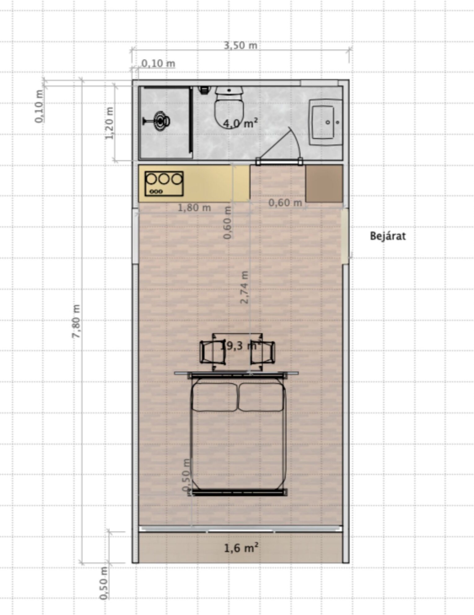 Külső méret: 350 x 780cm