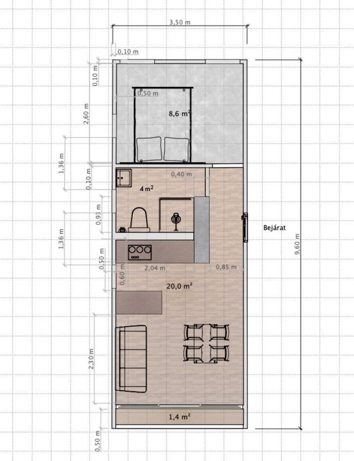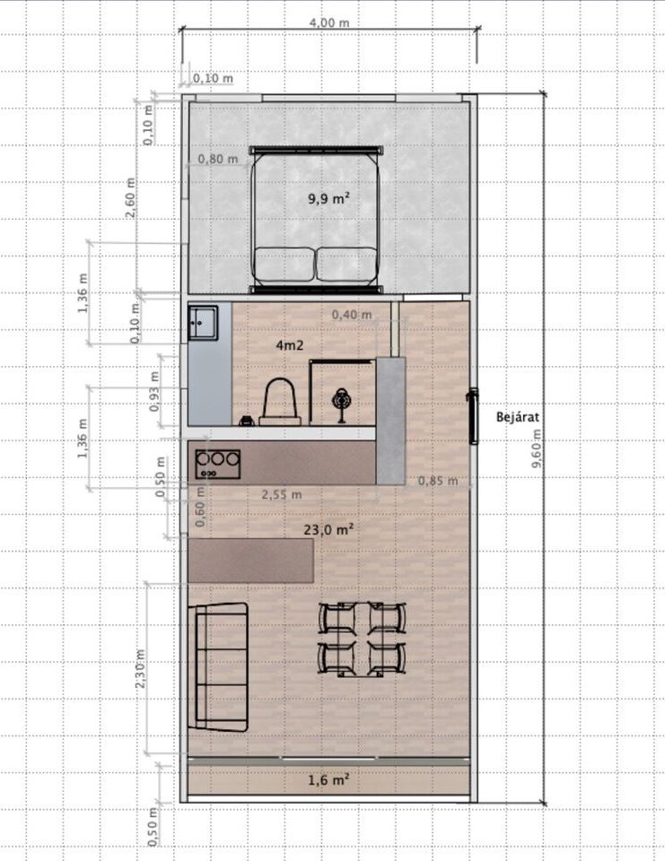 Külső méret: 400 x 960cm