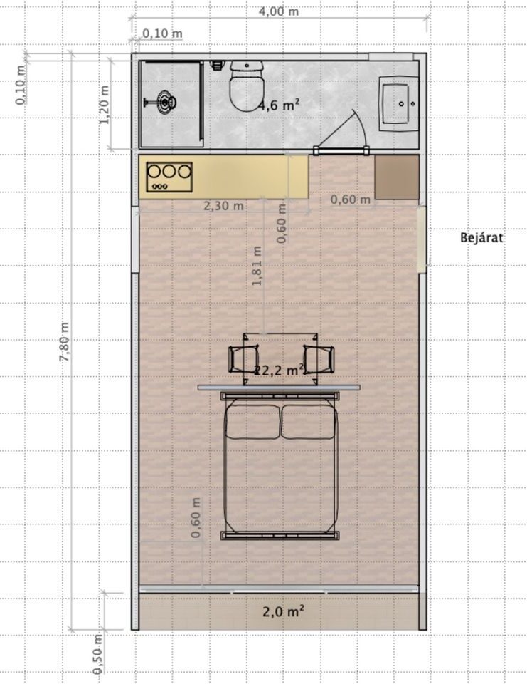 Külső méret: 400 x 780cm