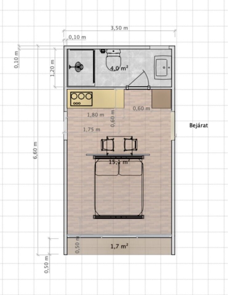 Belső alapterület: 19,47m2