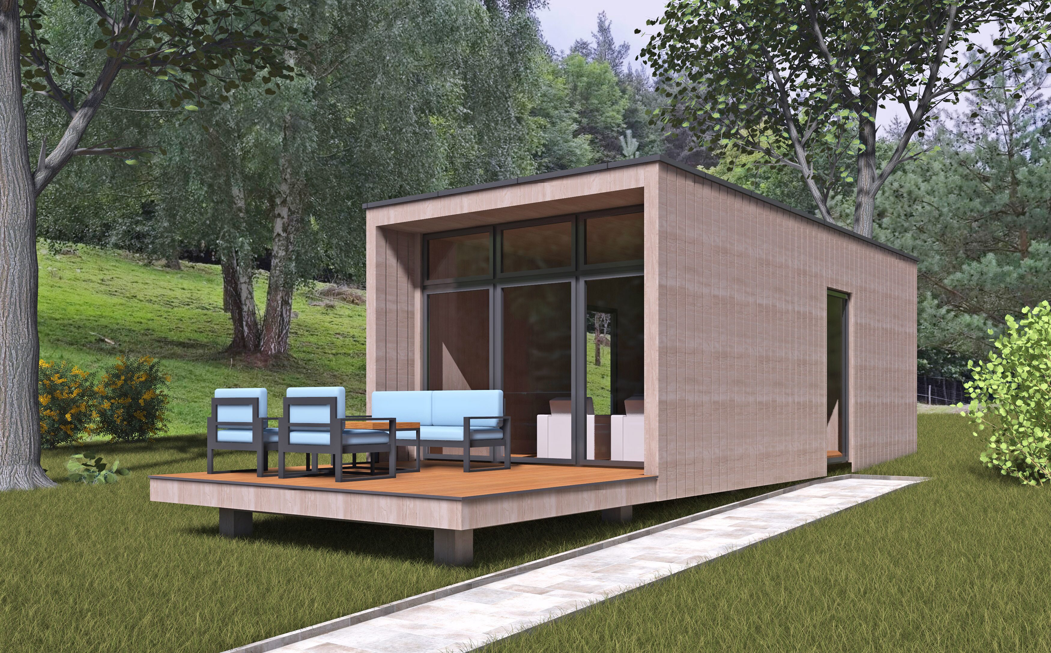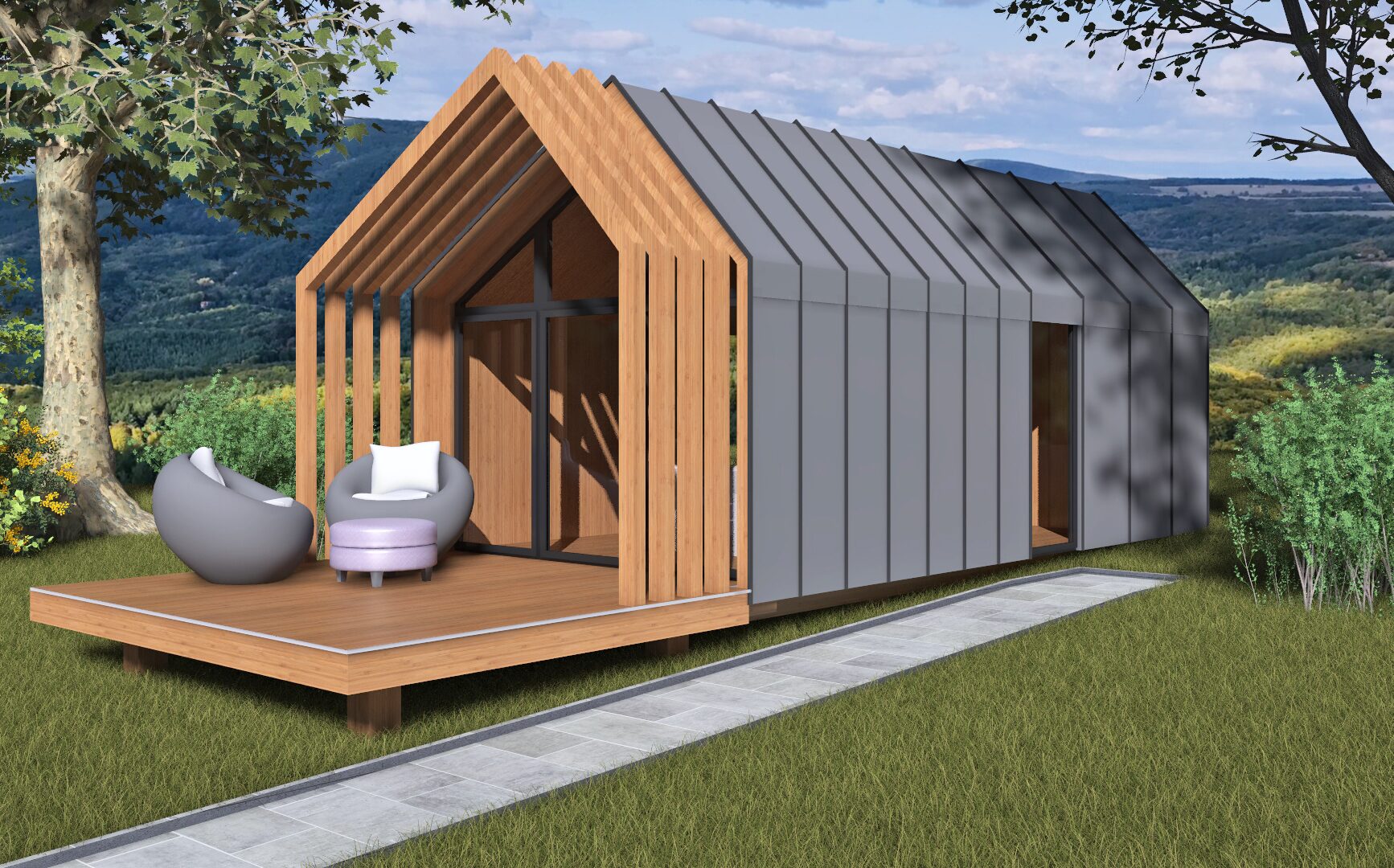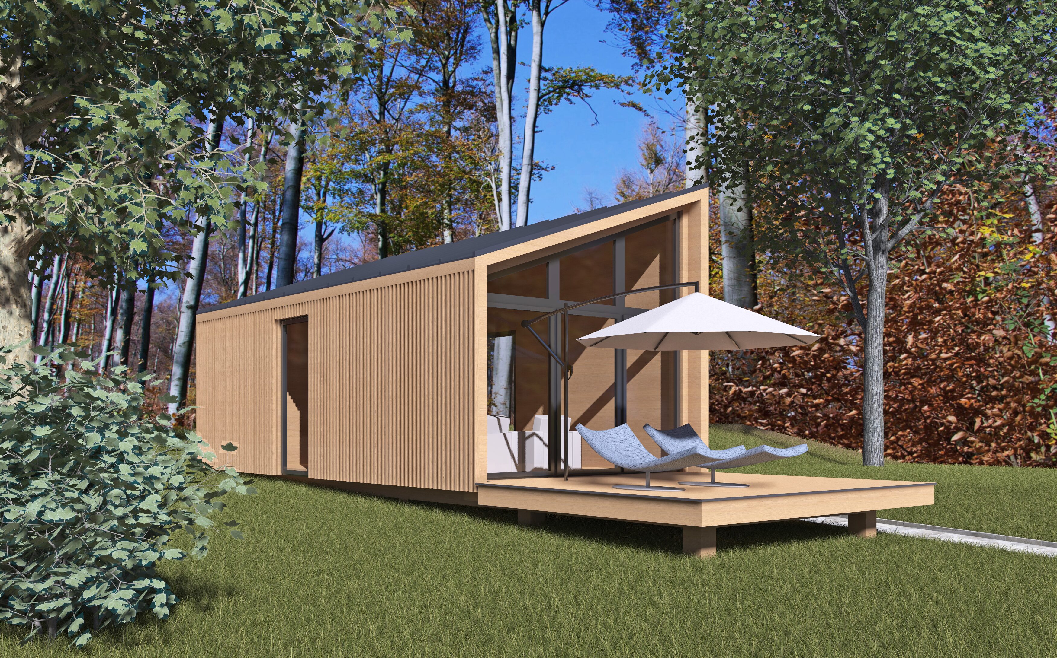 Kabinházaink környezettudatosan készülnek, mégis elegendő helyet biztosítva a komfortérzethez.
